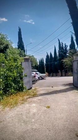 Участок огорожен забором с воротами и въездной группой.