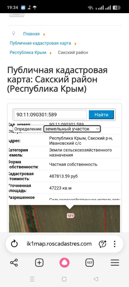 Земля сельхозназначения,кадастровый номер участка 90:11:090301:589,площадь участка 47223(кв.м),один собственник