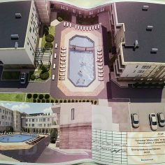 Новая гостиница на 75 номеров одно и двух комнатных. Магазины, столовые спортзал, бассейн ( по плану). Лобби бар, эксплуатируемая кровля. Со всех номеров вид на море или озёра.