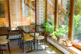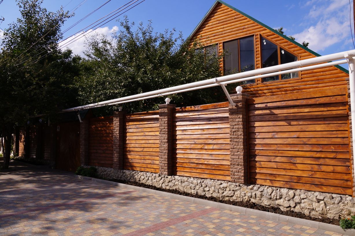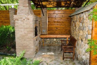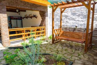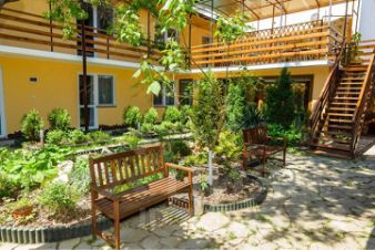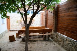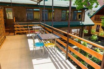 Для удобства гостей на территории предусмотрены: кухонная зона; столовая, оборудованная кондиционером; веранда с обеденными столами; терраса со столами на втором этаже; место для отдыха под навесом, оборудованное мебелью из крымского дуба; зона барбекю с печью для приготовления шашлыков; закрытый от посторонних тенистый дворик с местами для отдыха.