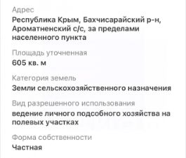 Все документы оформлены — частная собственность, категория земель сельхозназначения, разрешённое использование: ЛПХ на полевых участках.
