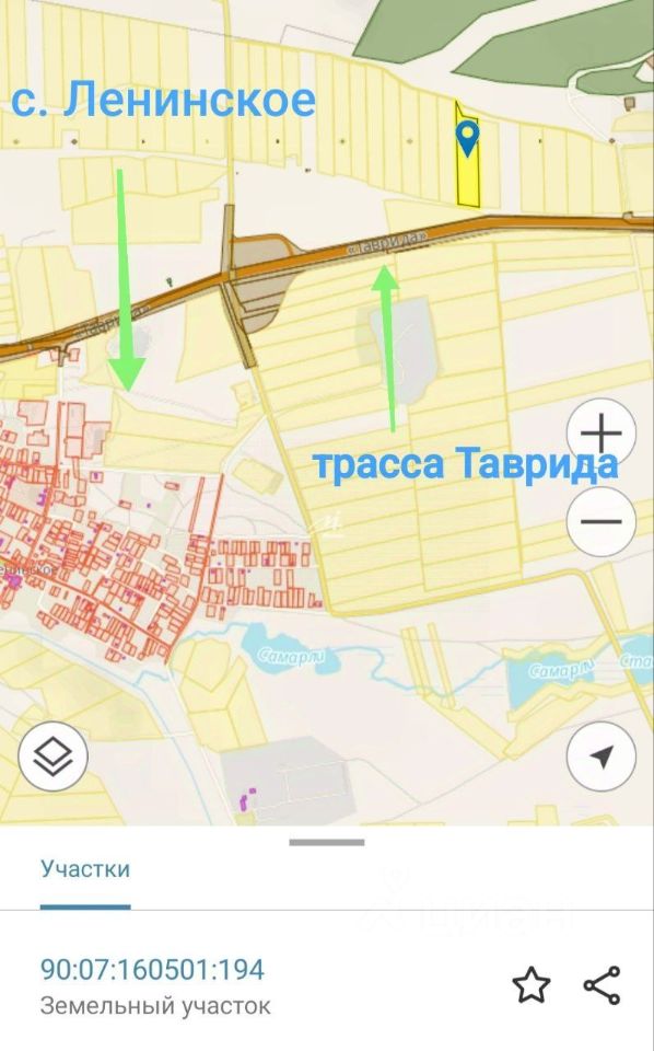 Участок находится рядом с федеральной трассой "Таврида" в районе села Ленинское. Идеальная транспортная доступность. Это не просто земля — это уже работающий актив, который приносит доход.