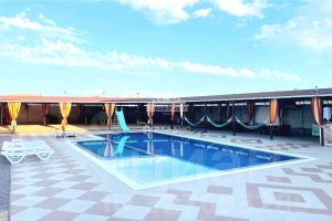 Бассейн 150 м (14x7 м), подогреваемый с мая по октябрь.