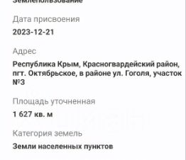 Продаю земельный участок 16,27 сотки (1 627 м²) в пгт Октябрьское, район ул. Гоголя, участок 3.