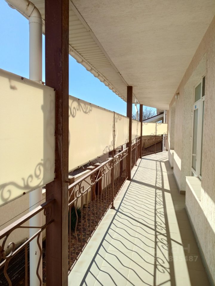 На 1-м этаже расположено два номера около 26 м2, два номера около 30 м2 (возможно объединение двух номеров, внутри имеется дверь, соединяющая два номера, два 2-х местных номера около 23 м2, летняя кухня около 60 м2, крытая терраса летняя около 70 м2, подсобное помещение около 40 м2: котельная, с/у, стиральные машинки, шкафы.