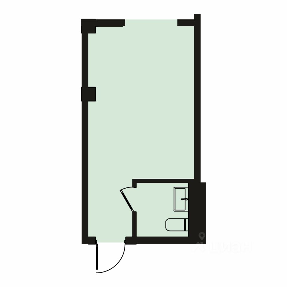Площадь 18 м2, санузел 2.5 м2.