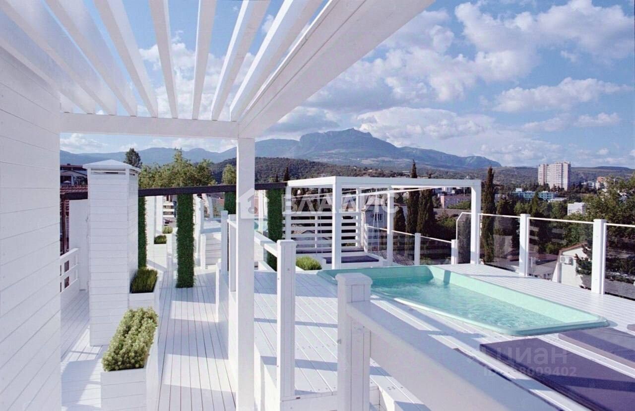 - Крышная терраса: Просторная терраса 100 м² на крыше трехэтажного здания с джакузи и завораживающим видом на горы.