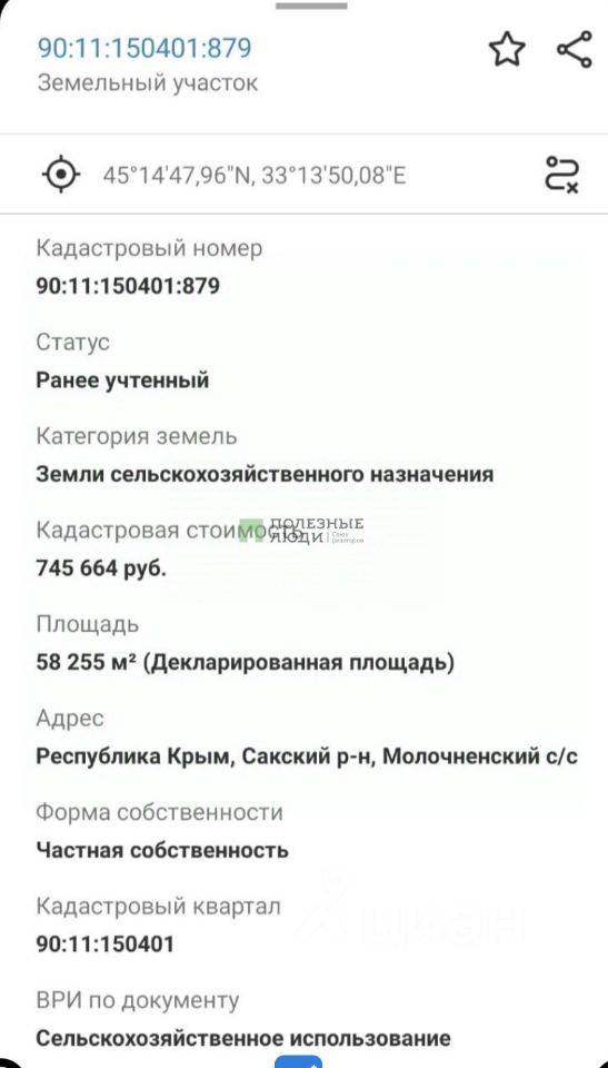 Кадастровый номер:90:11:150401:879