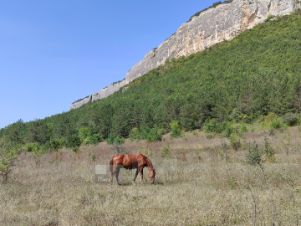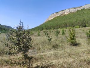 Арт. 57045497 2 участка смежных в Бахчисарайском районе, под горой Мангуп-Кале. Красивое видовое туристическое место, дорога на пещерный город Мангуп. Ровное поле чуть под уклоном к горе, по границе сосновый бор с одной стороны и орешниковые и кизиловые рощи с другой.