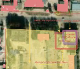 На участке 10 соток кроме здания есть автомоечный ангар с ямой, закрытая территория, ворота для въезда с улицы, а так же есть возможность заезда на общую территорию со стороны бывшего завода (с обратной стороны).