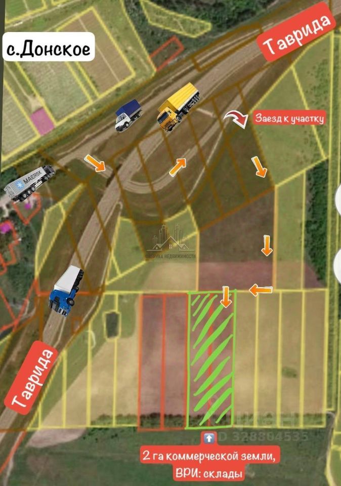 Арт. 90447994. Пpoдaжа 2 земельных участков общей плoщадью 2 гa, примыкающиx к трасce Taвpидa в р-не с. Дoнскoe.