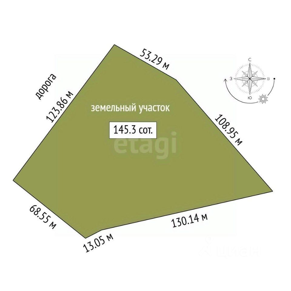 • Земля: 1,45 га (14 534 м²) .
