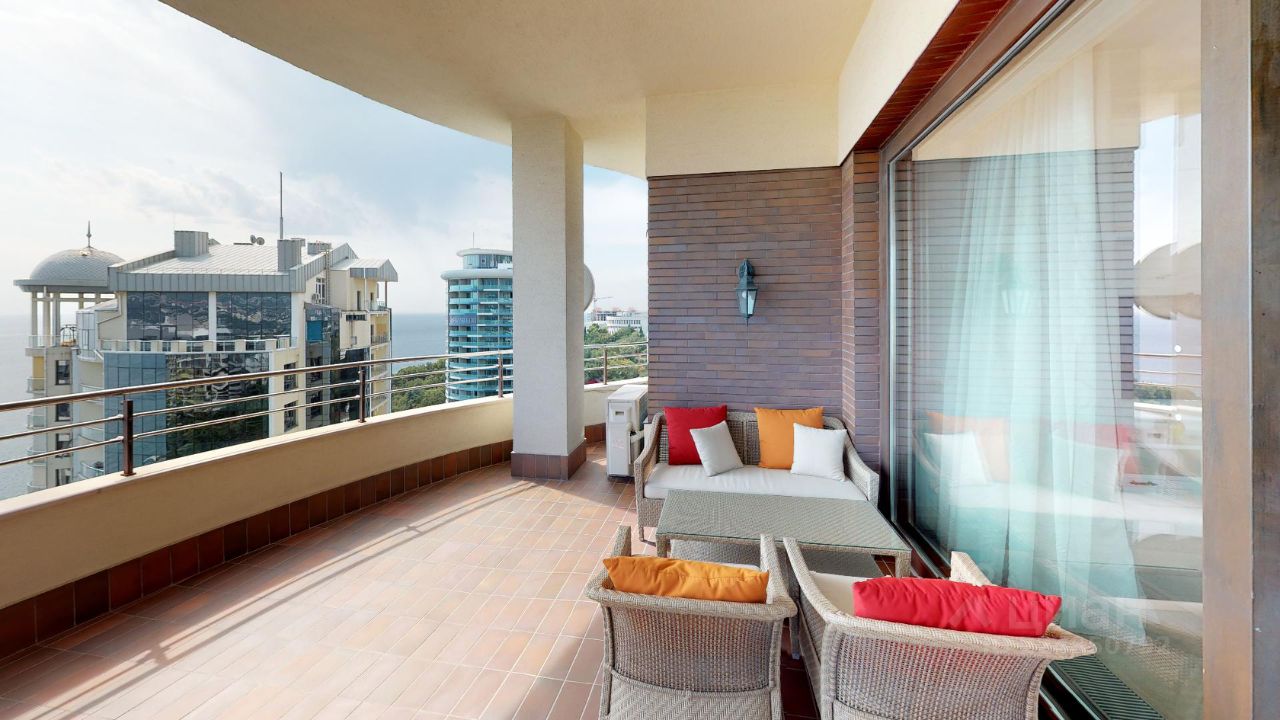 Элитная 3-х комнатная квартира в одном из лучших комплексов города Ялты ЖК Омега в Приморском парке. Жилищный Комплекс Омега сочетание изящной и современной архитектуры расположен в парковой зоне Ялты в окружении экзотических деревьев у самого моря. Знаменитая пальмовая аллея приведет вас прямо к пляжу и дорога к нему превратится в приятную и полезную прогулку.