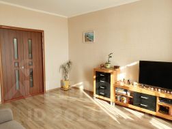 На полу в комнатах ламинат 32 класса, в прихожей и кухне ламинированная инженерная доска. Туалет - кафель.