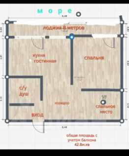 (панорамные окна 3 окна , все с видом на море, балкон 9 метров в длинну с выходом из гостиной и спальни)