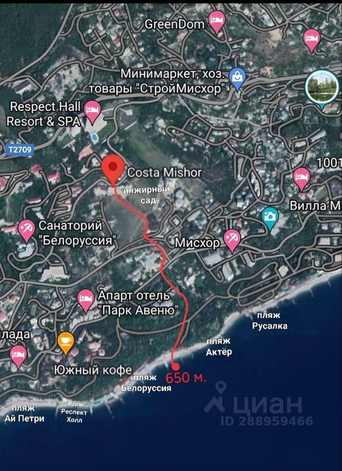 До моря 650 метров, часть пути  через красивейший Мисхорский парк 23Га(в данный момент реставрируют, будет один из значимых парков ЮБК)