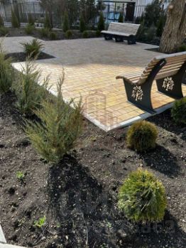 Небольшой скверик в окружении кипарисов, безопасная детская площадка и места для утренней зарядки.