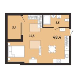 Продаются 1-комн. апартаменты, 48,1 м²