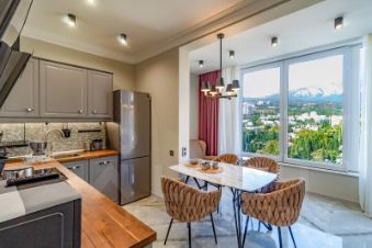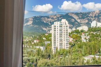 Квартира состоит из кухни-гостиной, спальни, коридора 3,7 кв.м. и совмещённого санузла. В квартире дизайнерский ремонт. Из комнат открывается красивый вид на горы и Ялту.