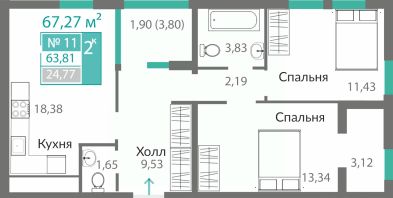 Продаётся 2-комнатная квартира в строящемся доме (13 этап (Секция Б8)), срок сдачи: I-кв. 2027, общей площадью 63.81 кв.м., на 2 этаже. ОТКРЫВАЕМ НОВЫЕ ГОРИЗОНТЫ