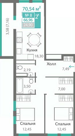 Продаётся 2-комнатная квартира в строящемся доме (13 этап (Секция Б8)), срок сдачи: I-кв. 2027, общей площадью 66.96 кв.м., на 2 этаже. ОТКРЫВАЕМ НОВЫЕ ГОРИЗОНТЫ