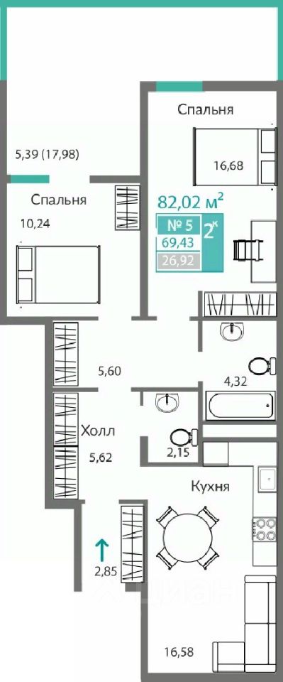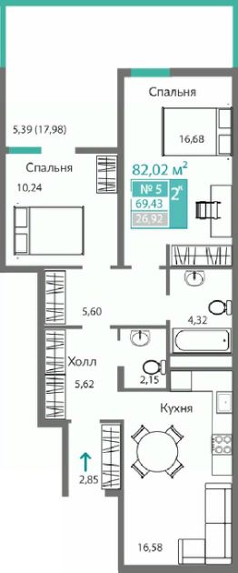 Продаётся 2-комнатная квартира в строящемся доме (15 этап (Секция М, К3, М1.2)), срок сдачи: I-кв. 2027, общей площадью 69.43 кв.м., на 1 этаже. ОТКРЫВАЕМ НОВЫЕ ГОРИЗОНТЫ