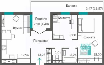 Продаётся 2-комнатная квартира в строящемся доме (дом 1), срок сдачи: I-кв. 2027, общей площадью 70.77 кв.м., на 6 этаже. Новый жилой комплекс "Абрикос" от застройщика "Монолит" расположен по адресу Республика Крым, Симферополь, Ростовская улица.