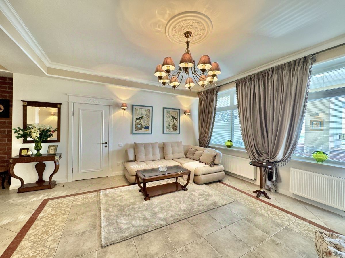 Квартира располагает холлом, гостиной, кухней-столовой, санузлом, кабинетом с видом на море, спальней, комнатой отдыха (можно оборудовать под вторую спальню) с видом на море и гардеробной. Вся необходимая бытовая техника, включая посудомоечную машину, также есть в наличии. Отопление в квартире осуществляется газовым котлом, что обеспечивает комфортный уровень тепла.
