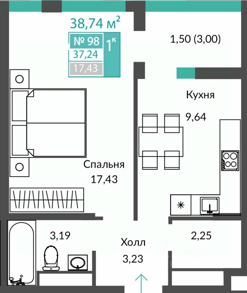 Продаётся 1-комнатная квартира в строящемся доме (Корпус 1), срок сдачи: II-кв. 2027, общей площадью 37.24 кв.м., на 10 этаже. Новый жилой комплекс "Единство" от застройщика "Монолит (Крым)" расположен по адресу Республика Крым, Симферопольский район, село Чистенькое