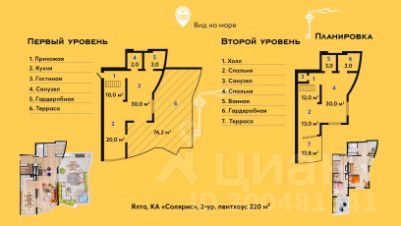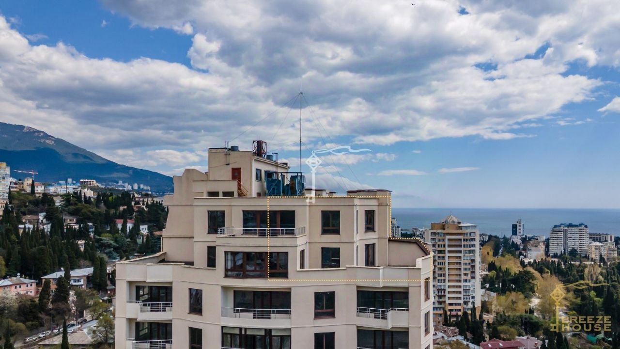 Продажа двухуровневого пентхауса с видами на горы, город, и море расположенного на 17 и 18 этажах престижного комплекса апартаментов "Солярис" с собственным парком и бассейном прямо в центре Ялты.
