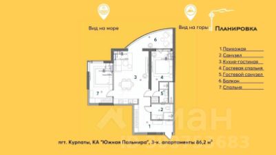 Продажа стильных трехкомнатных апартаментов с качественным дизайнерским ремонтом с двумя спальнями и панорамным видом на море в комплексе "Южная Пальмира" в Курпатах.
