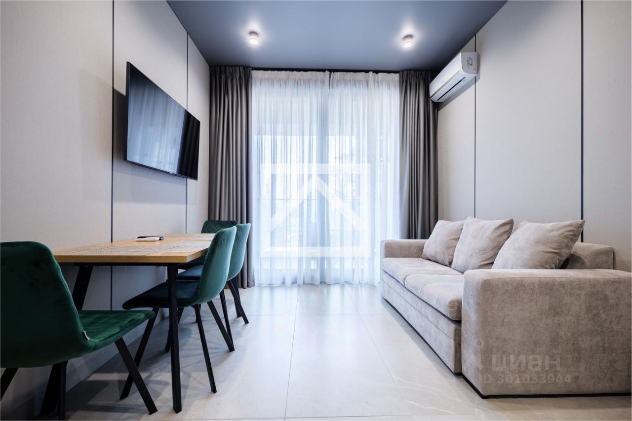 Апартамент полностью укомплектован всей необходимой мебелью и техникой для комфортного проживания.