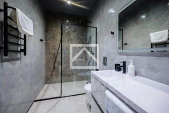 В апартаменте выполнена дизайнерская отделка с использованием качественных материалов. По периметру установлен водяной подогрев полов (Rehau). Кухня оснащена премиальной встроенной техникой.