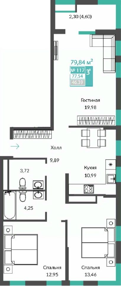 77,54 м²
