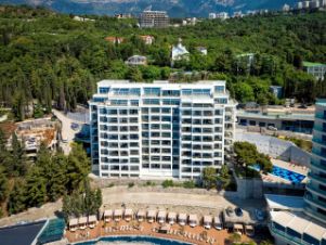 Это единственный комплекс в Ялте, обладающий собственным закрытым пляжем, расположенный на первой линии у самого моря.