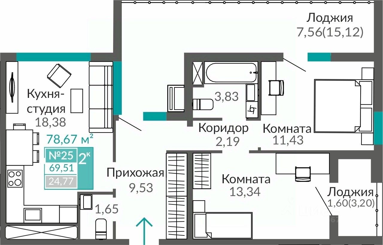 Продаётся 2-комнатная квартира в строящемся доме (Этап 16 (Секция В9)), срок сдачи: II-кв. 2027, общей площадью 69.51 кв.м., на 4 этаже. В жизни каждого наступает момент, когда мы понимаем, что выросли. Приходит время твердо идти вперед, расширять границы и открывать новые горизонты.