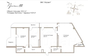 Квартира расположена на 12м этаже, общая площадь 145,5 кв.м., планировка включает: