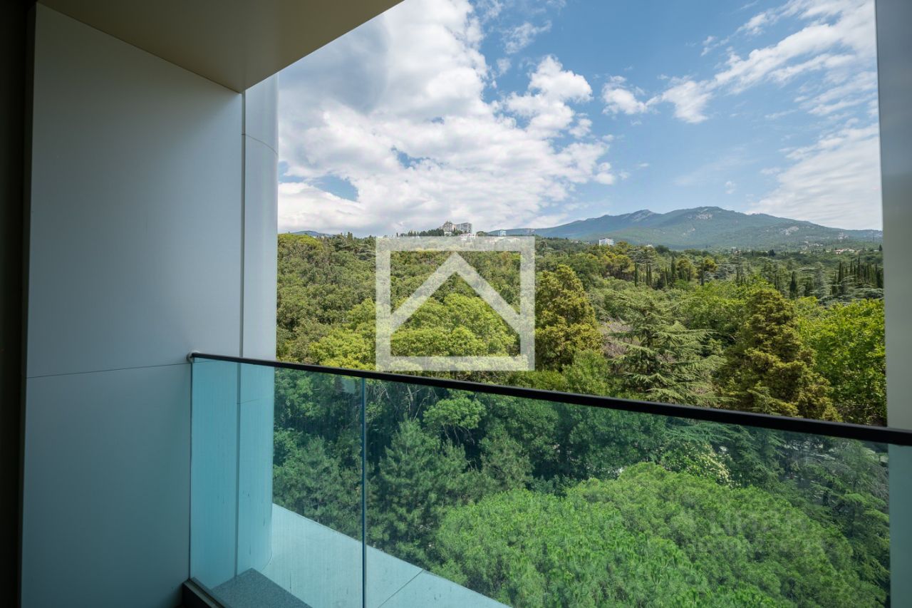 Из окон апартамента открывается живописный вид на величественные Крымские горы и вечно зеленый Массандровский парк.