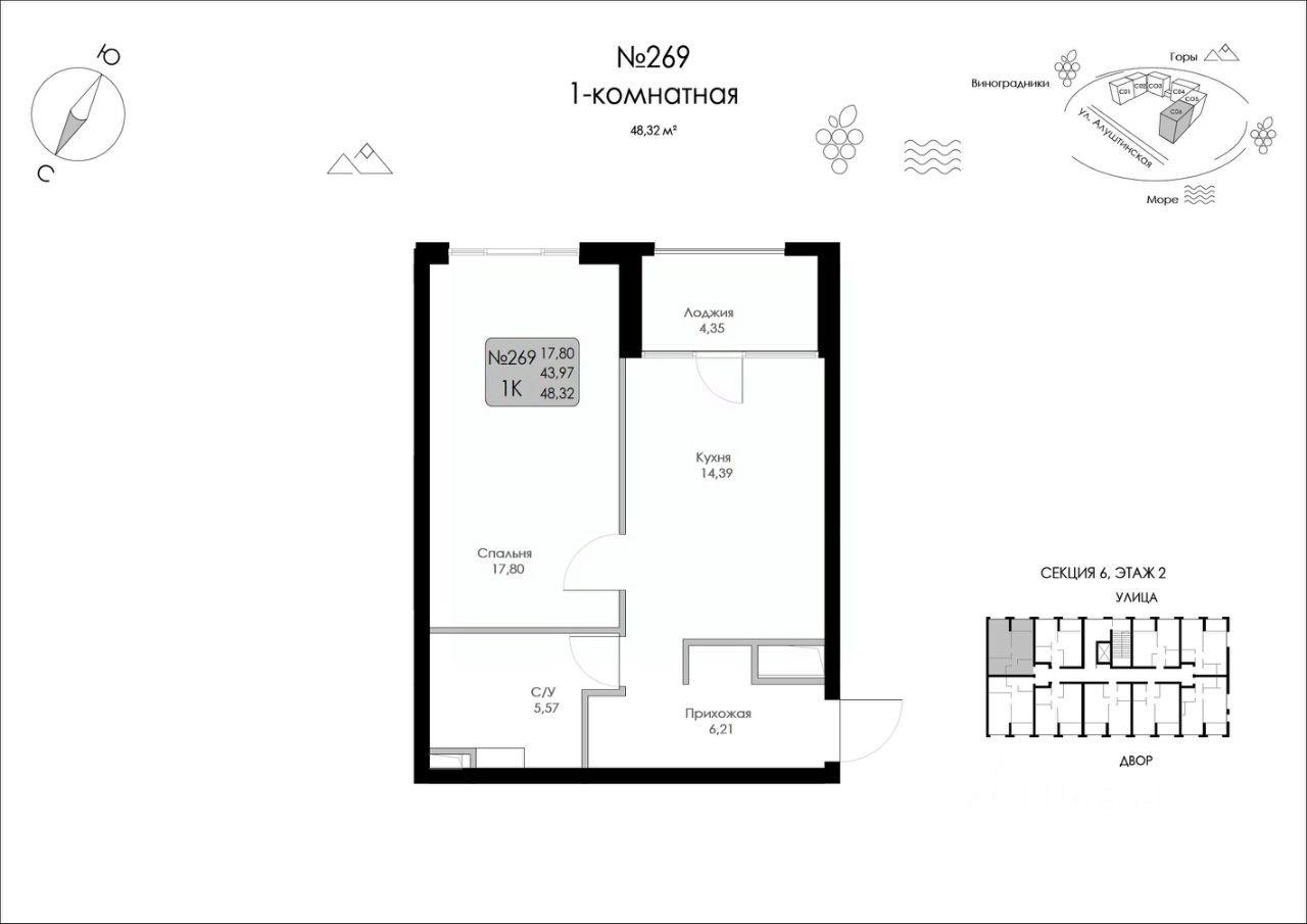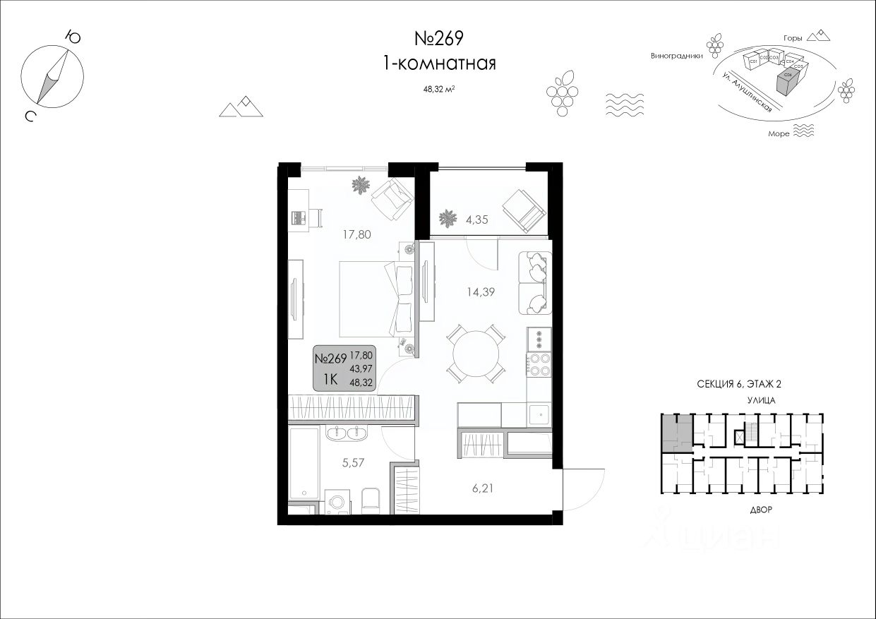 Продается квартира общей площадью 48,32 м2 в комплексе бизнес-класса "Долина Роз" в г. Судак.