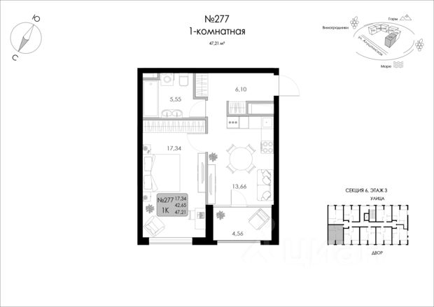 Продается квартира общей площадью 47,21 м2 в комплексе бизнес-класса "Долина Роз" в г. Судак.