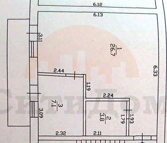Общая площадь квартиры 37,6 кв. м., которая состоит из кухни 7,1 кв. м., комнаты 20,7 кв. м., санузла 3,8 кв. м., коридора 6,0 кв. м. и балкона.