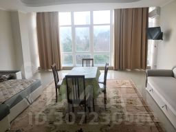 Общая площадь составляет 94 м.кв., расположена на втором этаже шестиэтажного дома! Высота потолков 3 метра, шикарная планировка! Жилая комната 33,2 кв.м., кухня 52,3 кв.м., два санузла с душевой и ванной. Сплит системы.