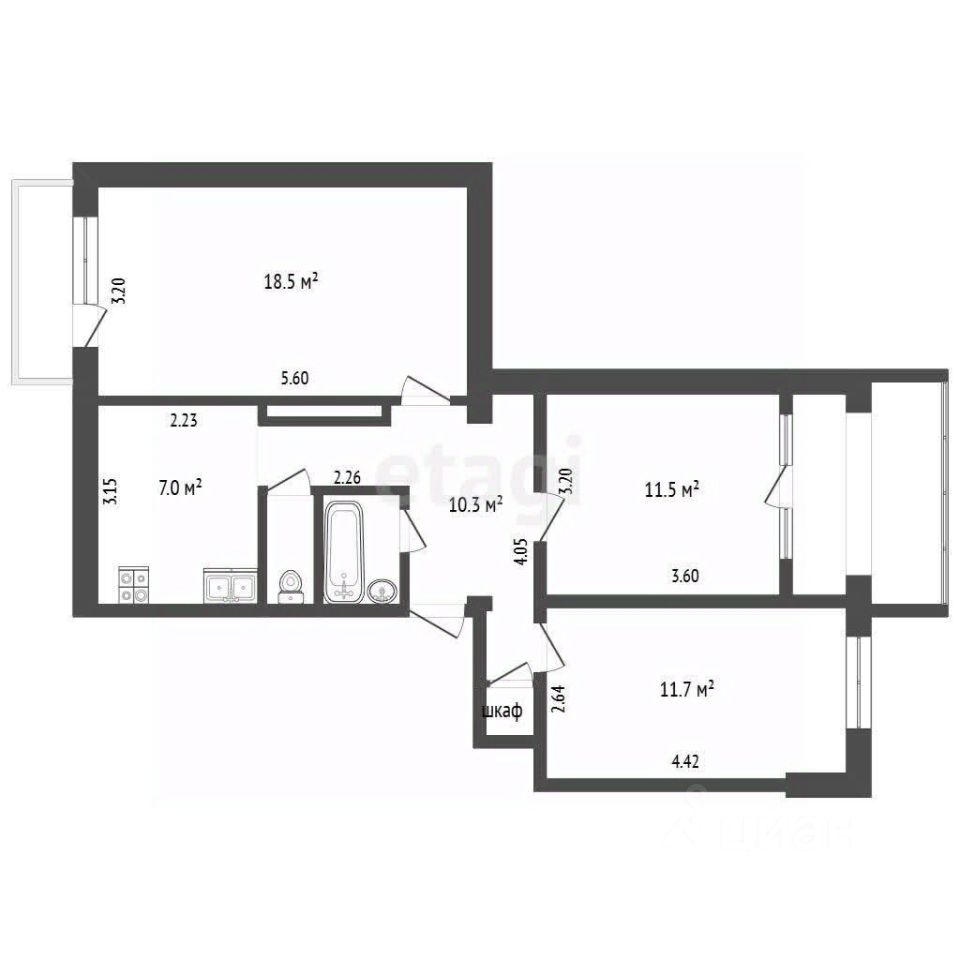 Светлая, просторная, с изолированными комнатами, балконом и большой лоджией, раздельным санузлом и свежим ремонтом.