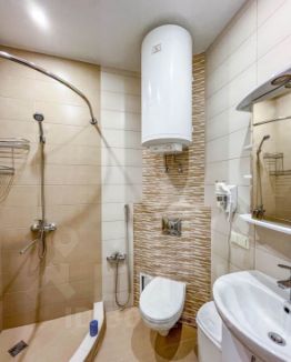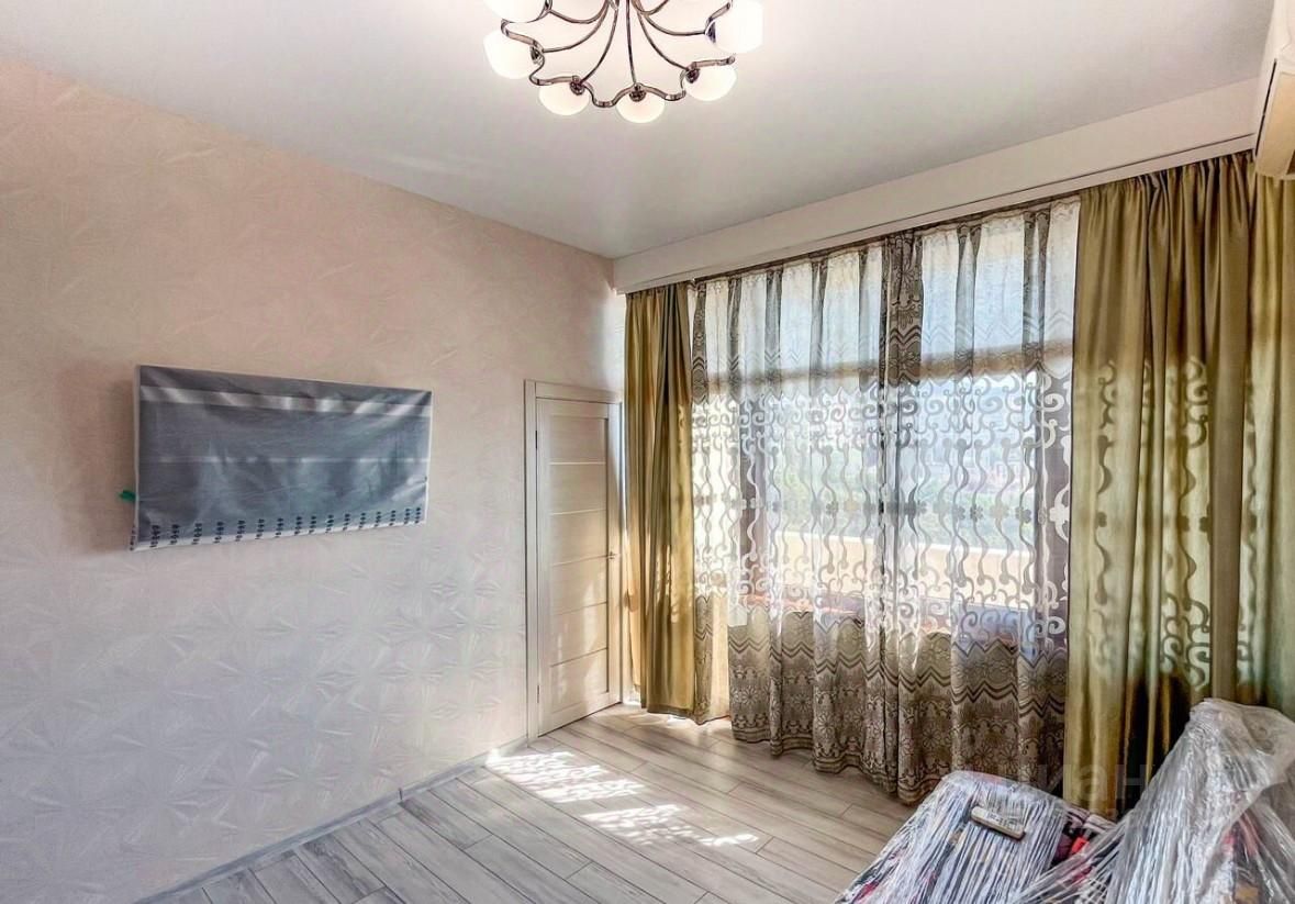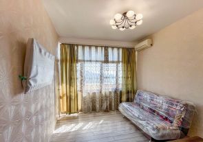 Гостиная, площадью 16,3 кв.м имеет выход на балкон, ориентированный на восточную сторону, откуда открывается вид на восход. Такое расположение самое удачное, поскольку в результате, квартира не жаркая. Рядом с гостиной- оборудованная кухня, площадью 5 кв.м и уютная спальня площадью 11 кв.м. Помещение гардероба требует окончания ремонта. Совмещенный санузел оснащен душевой кабиной и стиральной машиной.