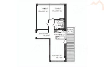 Сам апартамент включает в себя три изолированные просторные спальни, для каждого найдётся место. Кухня 4,65 кв. м., Санузел и просторная прихожая, в которой можно выделить место под гардеробную.