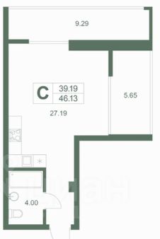 Апартаменты общей площадью 46.13 м², которые находятся на 4 этаже 9 этажного дома, кухня 6.19м2, жилая 26.19, санузел совмещённый.