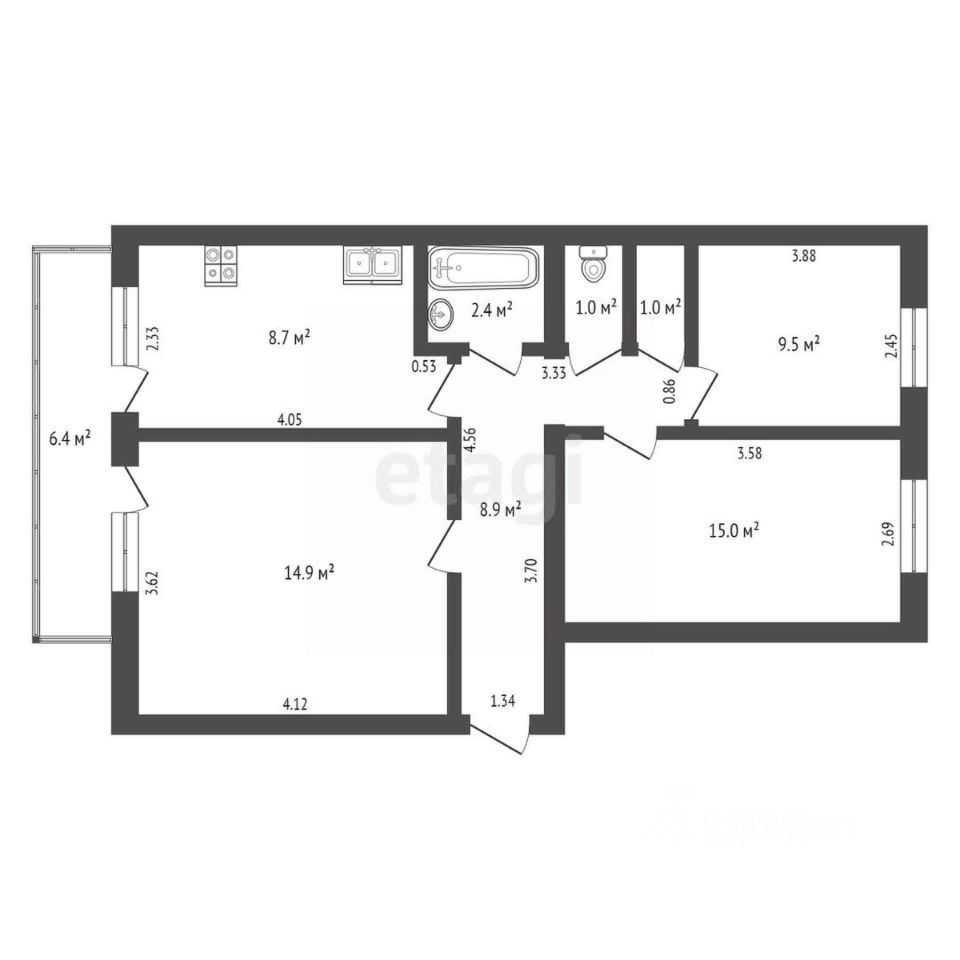 Общая площадь 60.4 кв.м. Жилая площадь 39.4 кв.м. Состояние квартиры: косметический ремонт. На стенах новые обои, стоят пластиковые окна, современные двери. Отопление  газовое, установлены чугунные батареи. Есть колонка для нагрева воды. Просторная лоджия. Раздельный санузел. Окна выходят на солнечную сторону. Во дворе открытая парковка.