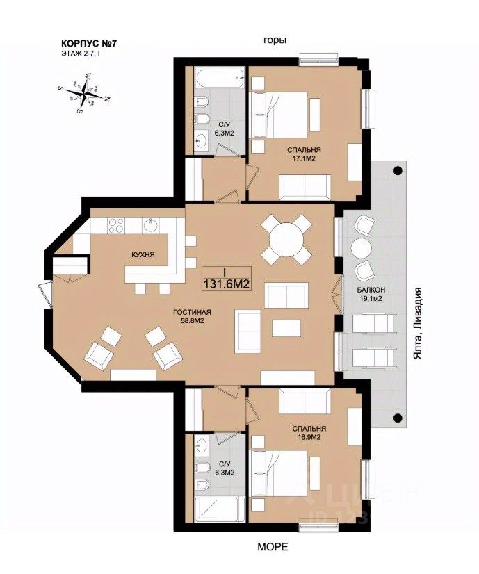 Общая площадь131,6 м²
