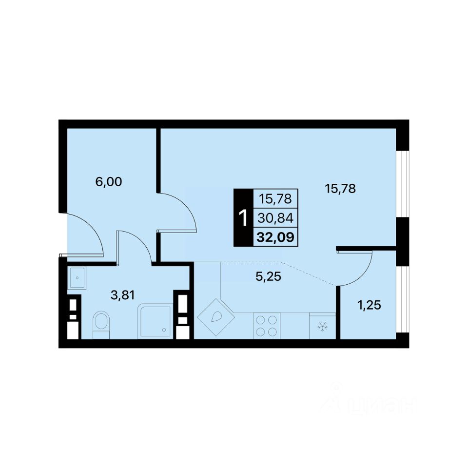 32,09 м²