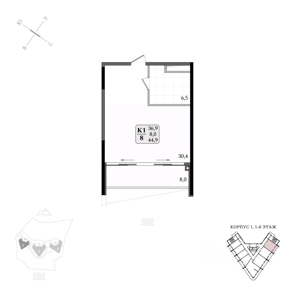 Продаются апартаменты 1/008 площадью 44,9 м2